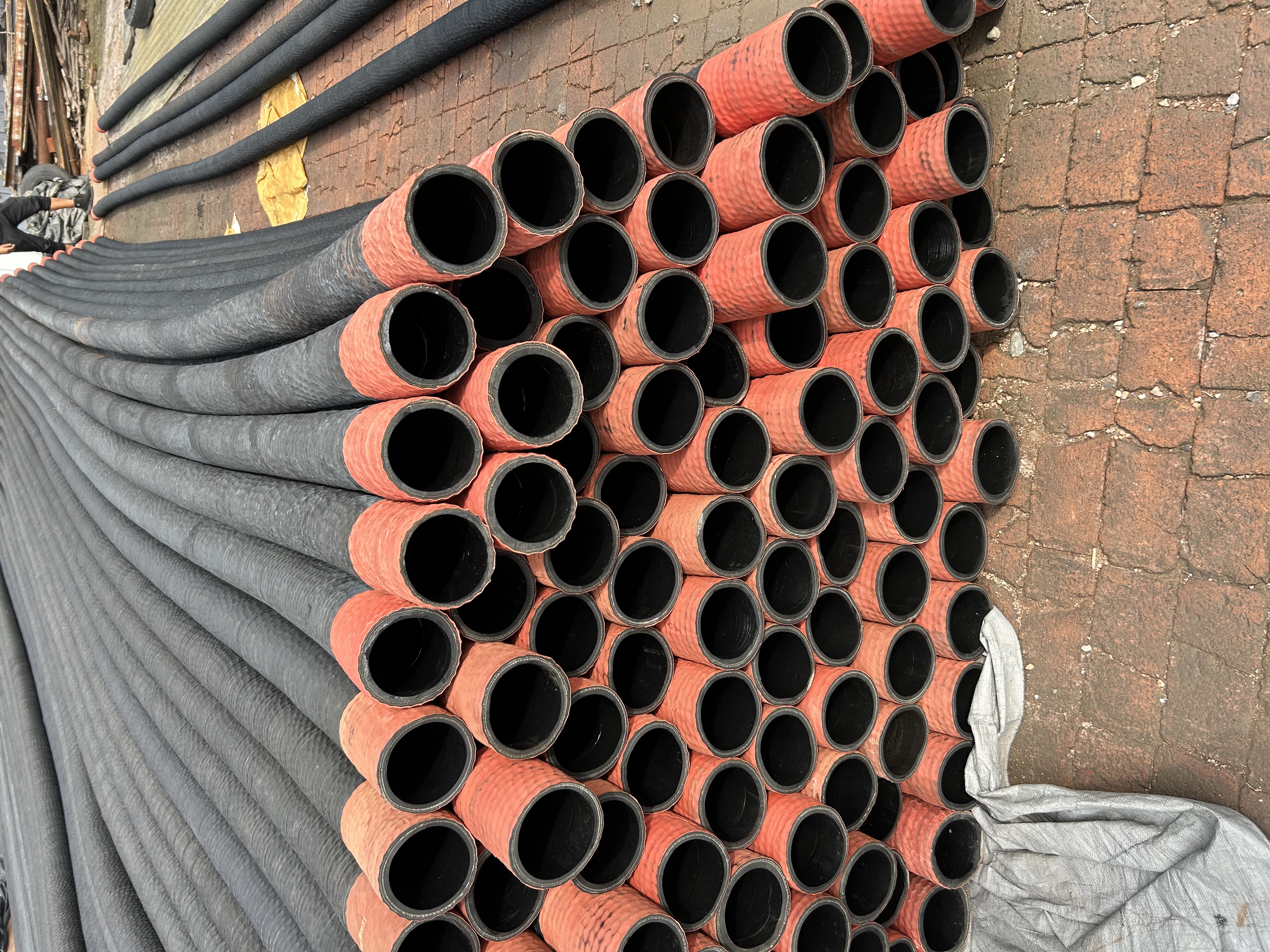 口径4寸,长度10米,红头耐磨淘金胶管,老客户加单复购2个货柜。